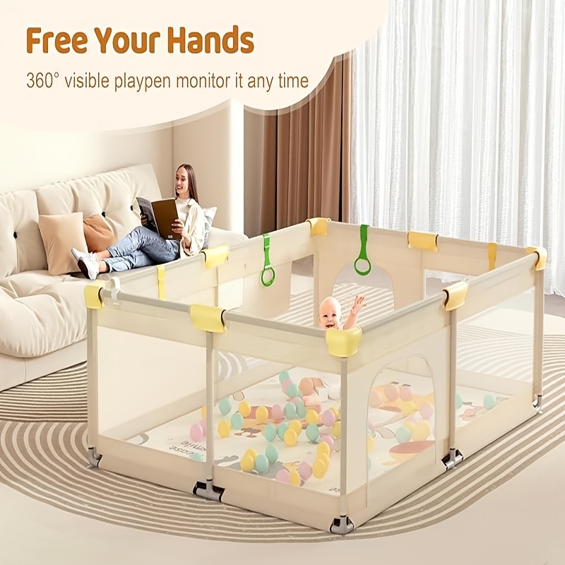 71.3X71.3 Inch Baby Playpen with Breathable Mesh & Anti-Fall Design - Indoor\u002FOutdoor Toddler Safety Pen, Easy Assembly, Portable Play Yard for Infants & Youngsters, Indoor Playpen, Playful Design, Secure Closure System for Christmas And Halloween