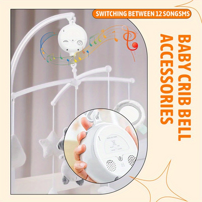 Crib Mobile Motor Baby Music Box Spinner with 3 Modes Volume Adjustable 12 Lullabies Auto-Off After 30 Minutes, Stylish Crib Accessory, Contemporary Design, Highquality Motor, Lullaby Spinner