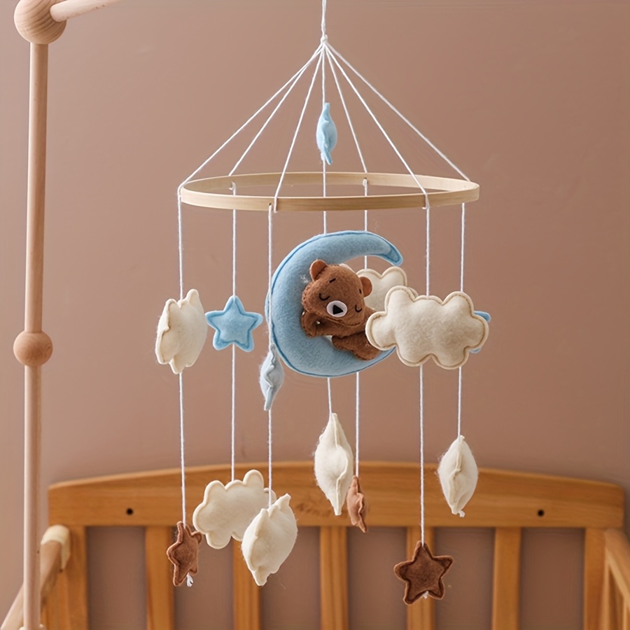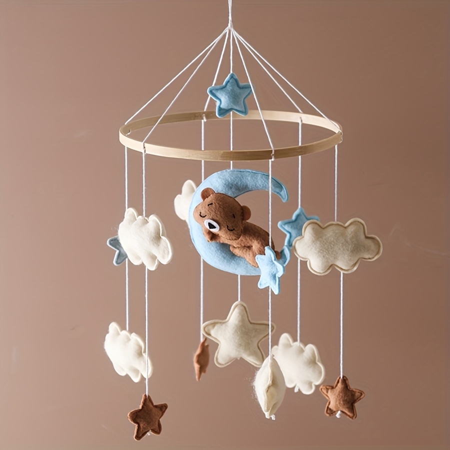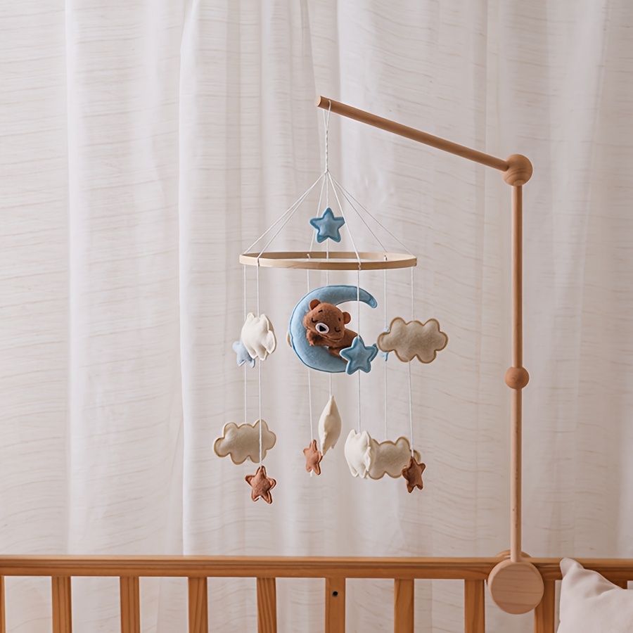 Cute Blue Moon Bear Shaped Cradle Mobile Toy, Neutral Crib Toy Hanging Nursery Decoration Accessories