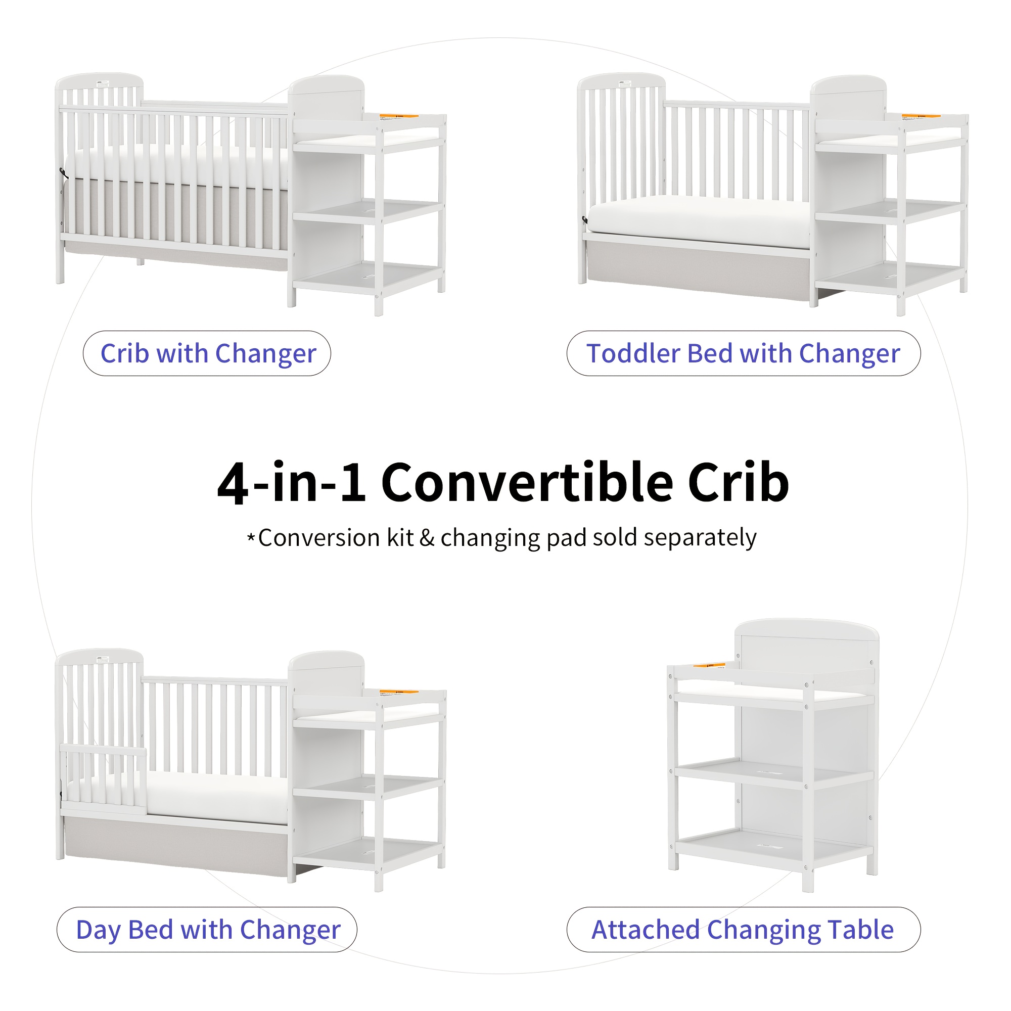 Goldzone 4-in-1 Convertible Baby Crib, Wooden Baby Stuffs Converts Into Toddler Bed with Changing Table, Newborn Essential Items Full Size Nursery Decor Cribs, Adjustable Heights, Item Weight: 56lbs, Maximum Weight Recommendation: 50lbs